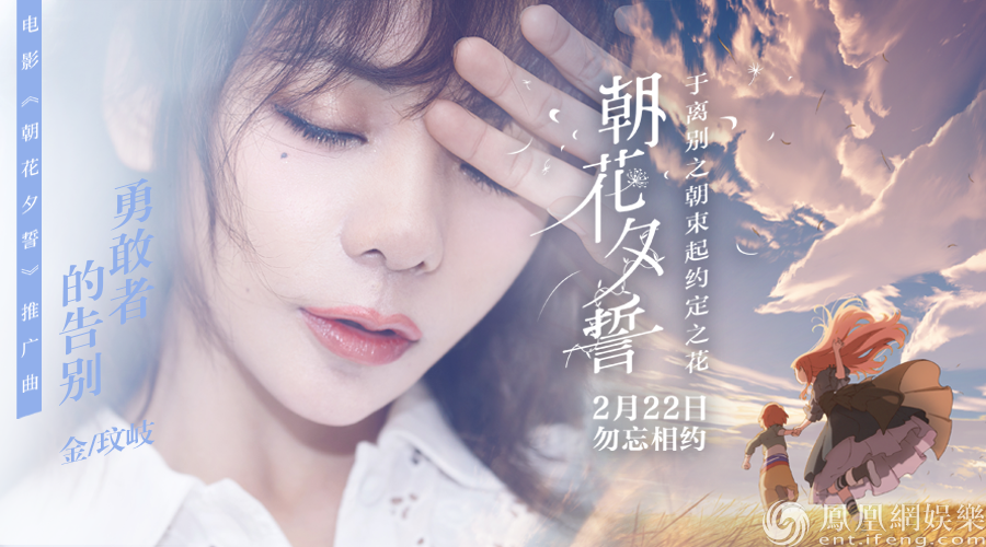 即將于2月22日上映的年度催淚電影《朝花夕誓》發布推廣曲《勇敢者的告別》MV,由唱作才女金玟岐溫柔獻聲,以微笑和眼淚譜寫“人生離歌”,抒情旋律搭配戳心歌詞被網友評為“年度最感動主題曲”。