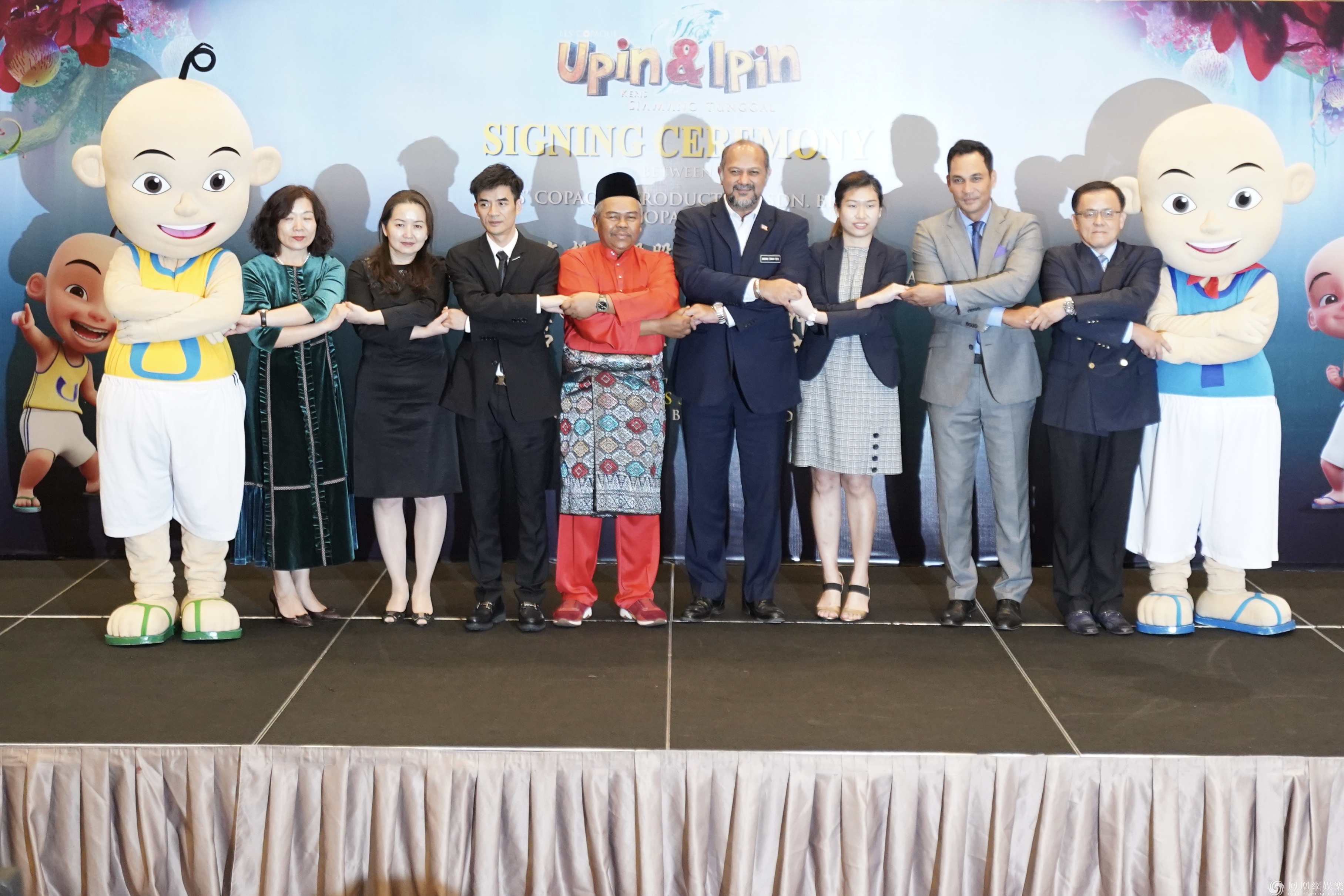 4月19日,文投控股在吉隆坡與馬來西亞3D動畫公司制作發行方Les’Copaque舉辦簽約儀式,正式拿下馬來西亞十三年“國寶級”成熟IP動畫電影《優賓和怡賓:獨猿神劍》在國內的合作推廣權。