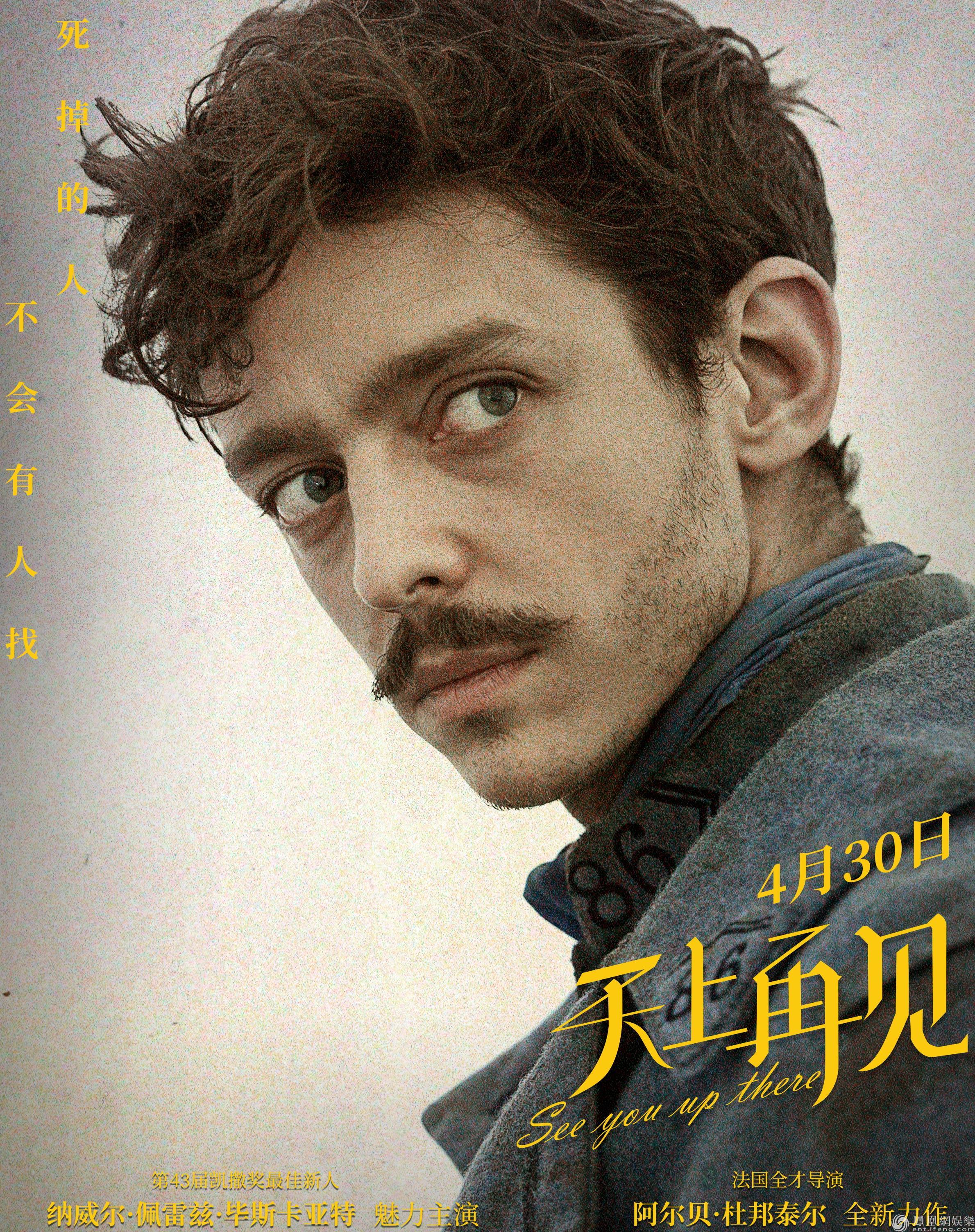 《天上再見》改編自法國殿堂級犯罪小說大師皮耶·勒梅特爾的同名小說,曾于2013年獲得有“法國諾貝爾文學獎”之稱的龔古爾文學獎。改編成電影后更是成績斐然,于2018年在有“歐洲奧斯卡”之稱的凱撒獎中共收獲13項提名,榮獲最佳導演、最佳改編劇本、最佳攝影、最佳服裝、最佳布景五項大獎。影片于法國上映后,更是掀起全境觀影熱潮,甚至得到了法國前總統歐蘭德親自出面邀請政商名流搶先觀賞的殊榮。國內上映后也得到了網友們的大力支持,不僅打出了8.0分的高分,還獲評“年度必看反戰佳片”,有望憑借超高品質在競爭激烈的五一檔內華麗逆襲。