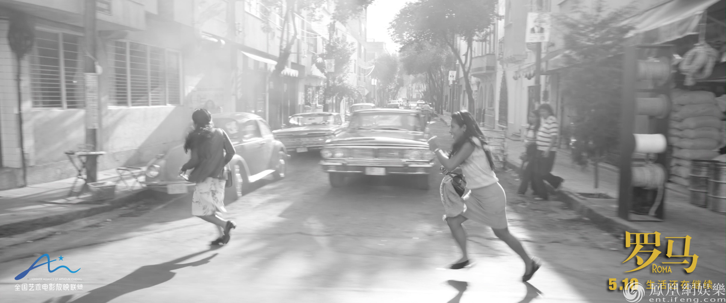 影片運用了大量固定鏡頭與橫搖鏡頭的拍攝手法,今日片方發布的片段中橫移鏡頭對準了女傭在戶外街頭奔跑的情景,這一片段既展現了70年代墨西哥的社會環境,又一瞥女傭庭院之外對愛情的追逐。鏡頭始終與角色之間保持一定距離,在凸顯精湛攝影技術的同時,也讓觀眾更有代入感,一瞬間,仿佛置身其中,和女主角一起暢快奔跑。
