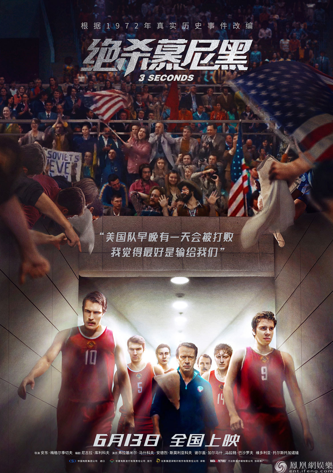 電影《絕殺慕尼黑》根據1972年真實事件改編,在美蘇冷戰的大背景下,蘇聯隊在奧運會男籃決賽中,迎戰制霸籃球賽場36年的美國隊。面對不可戰勝的對手,蘇聯隊主教練加蘭任和年輕的小伙子們,為大家共同獻上了一曲熱血澎湃的信仰之歌、一場史詩級的高燃之役。在這個需要信心的年代里,這部電影用它高燃的精神內核,和永不服輸的昂揚斗志讓我們明白,也許世界上并沒有永遠屹立不倒的強者,只要相信自己,就總會有打敗“強者”的一天。