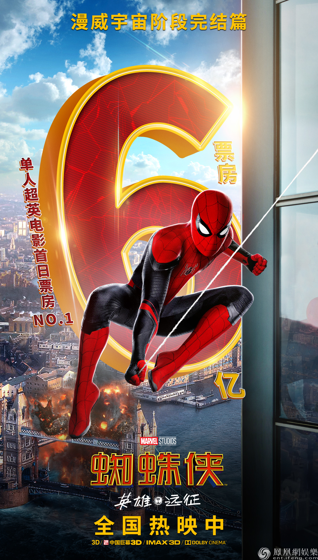 片中蜘蛛俠開辟宏大的歐洲戰場,與眾多強敵開展史詩對決。無論是緊張刺激目不暇接的動作場面,還是炫目驚人的超燃視效特技,在銀幕上都顯得震撼無比,讓人感受“有史以來最熱血燃炸的蜘蛛俠”,與他一同高空飛躍并肩戰斗。觀眾紛紛預測“票房至少20億”,在全球觀眾熱盼口碑救“市”巨制之際,《蜘蛛俠:英雄遠征》成為暑期檔當仁不讓的觀影首選。上映不到四天,票房已突破6億并持續攀升,打破此前多項紀錄,成為超級英雄電影的又一“巔峰之作”。蜘蛛俠熱浪已經襲來,不負眾望稱霸暑期檔。