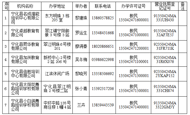 為進一步規(guī)范校外培訓機構辦學行為,嚴格校外培訓機構準入制度,加強對培訓機構的服務與管理,維護培訓機構和受教育者的合法權益,促進我縣民辦教育事業(yè)的健康發(fā)展,切實減輕中小學生課外負擔,引導中小學生參加守法合規(guī)的培訓機構。現將寧化縣民辦校外培訓機構“白名單”予以公示(排名不分先后,名單見附表),敬請社會各界監(jiān)督。