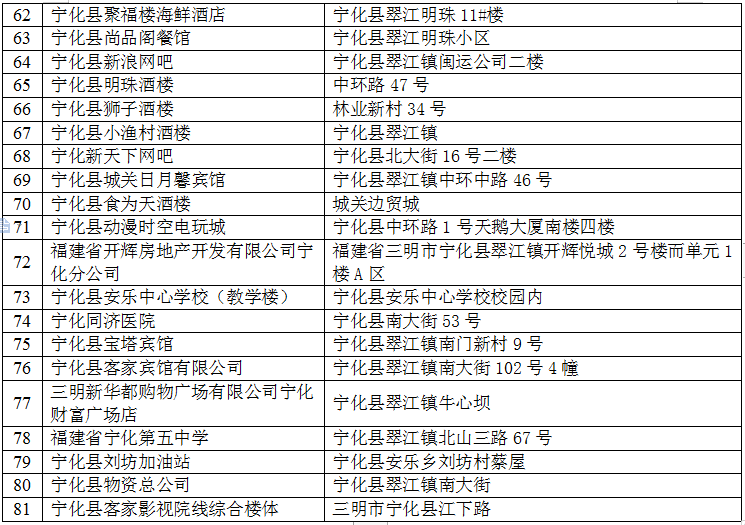 為全面推行“雙隨機一公開”監管,進一步落實消防監督檢查工作,創造良好的消防安全環境,即日起至10月31日,寧化縣消防救援大隊將對以下場所進行隨機監督抽查,現將隨機抽查對象公告如下: