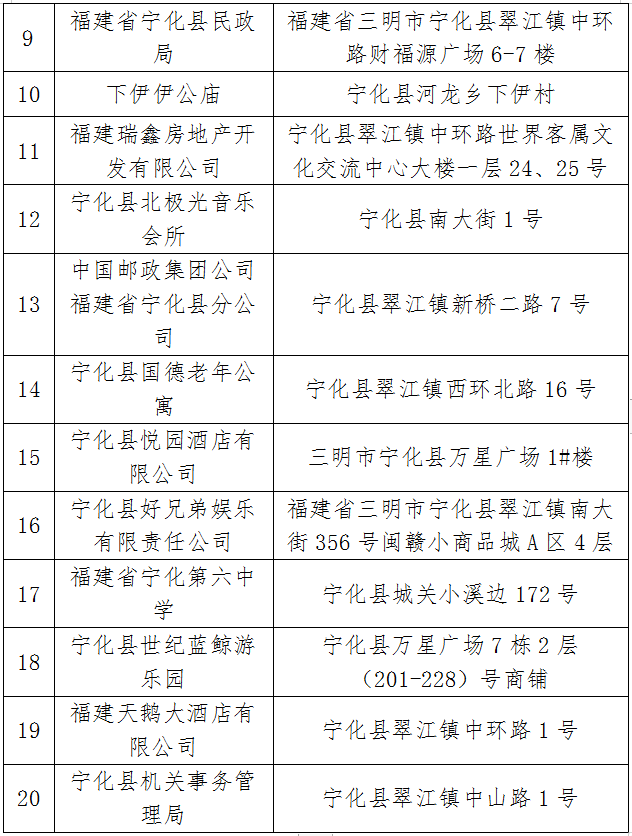 為全面推行“雙隨機一公開”監管,進一步落實消防監督檢查工作,創造良好的消防安全環境,6月1日起至6月30日,寧化縣消防救援大隊將對以下場所進行6月份暨端午節“雙隨機一公開”監督抽查,現將隨機抽查對象公告如下: