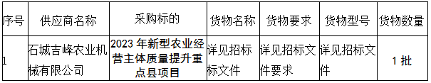 2023年新型農業經營主體質量提升重點縣項目 成交公告