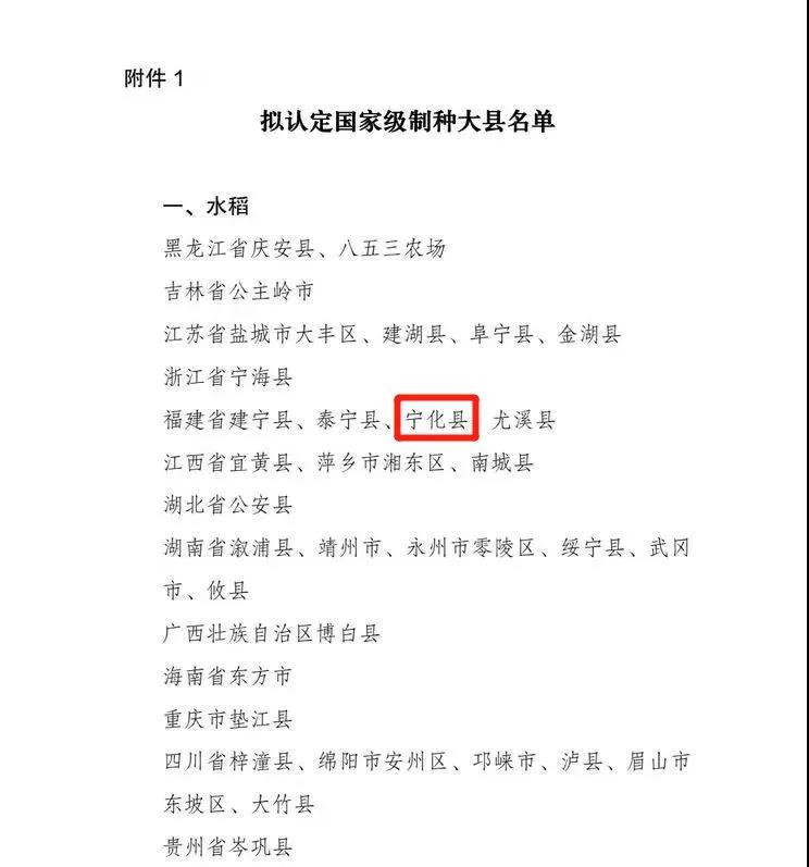 記者2月15日從農(nóng)業(yè)農(nóng)村部官網(wǎng)了解到,農(nóng)業(yè)農(nóng)村部對(duì)新一輪國(guó)家級(jí)制種大縣認(rèn)定進(jìn)行了公示,全國(guó)32個(gè)水稻制種大縣名單中,寧化縣首次入圍。