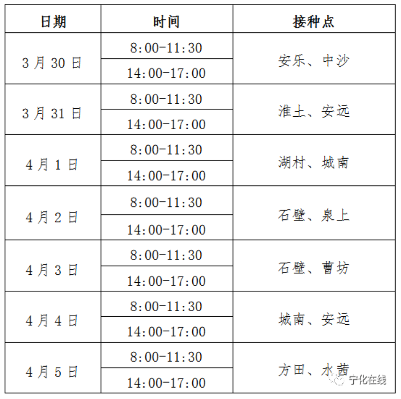 ◎注意!寧化縣3月30日-4月5日新冠病毒疫苗接種安排來了