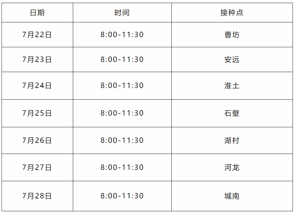 根據市新冠病毒疫苗接種工作總體安排,現將我縣7月22日-7月28日新冠病毒疫苗接種安排如下: