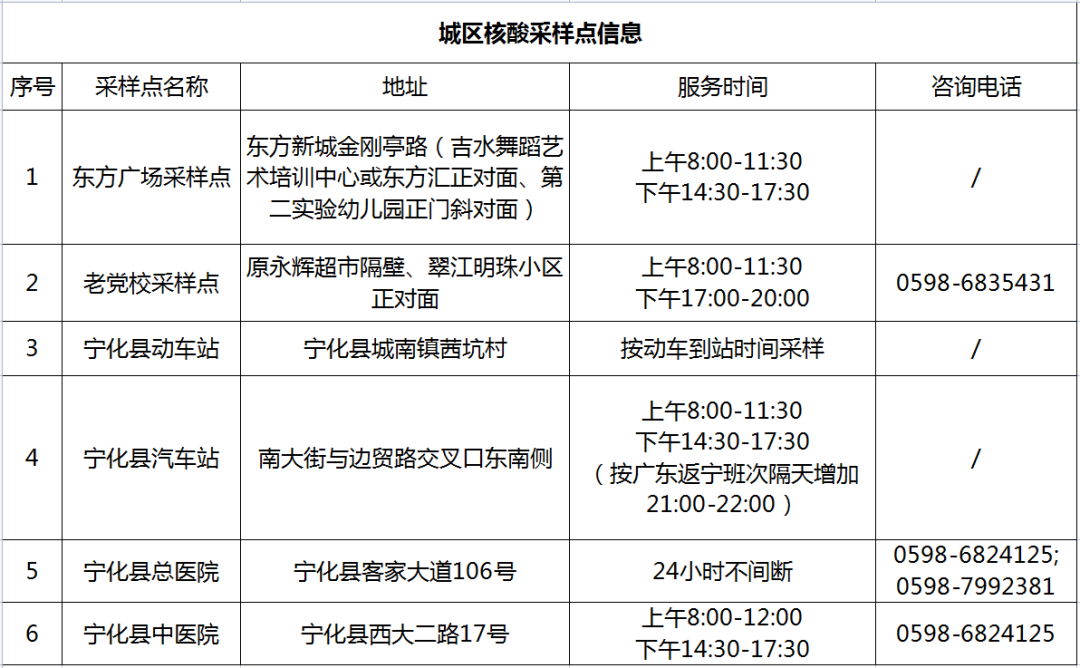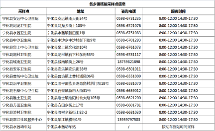 ◎寧化城區、鄉鎮核酸采樣點都在哪里?快收藏!