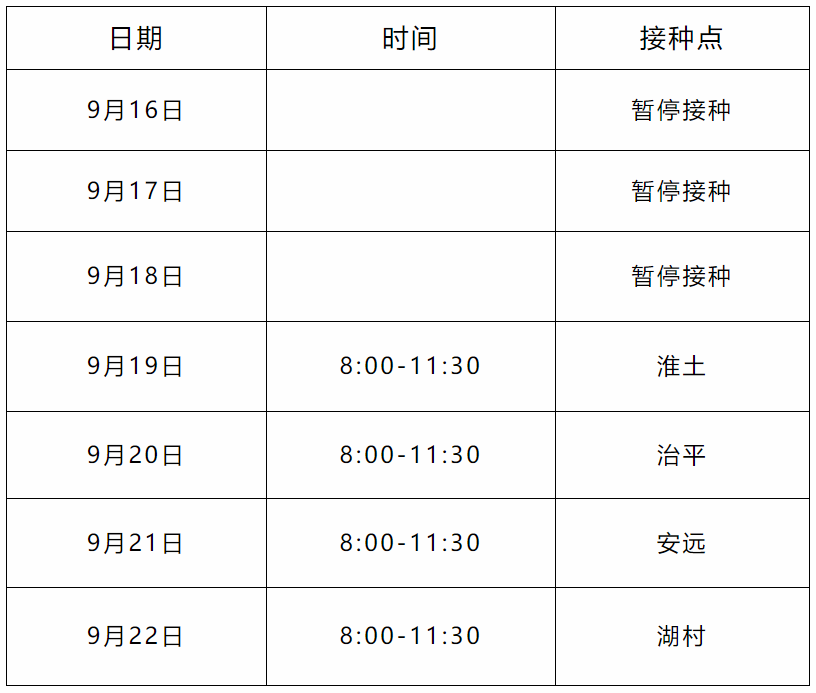 根據市新冠病毒疫苗接種工作總體安排,現將我縣9月16日-9月22日新冠病毒疫苗接種安排如下:
