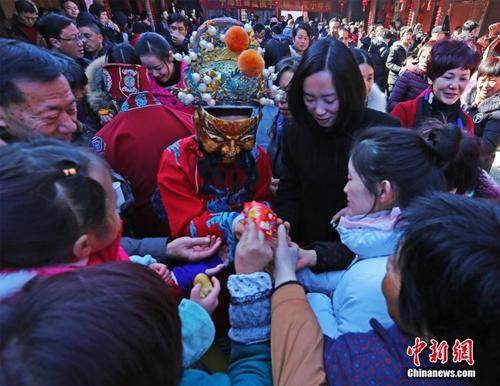 資料圖:沈陽故宮掛門神迎小年。 孫昊聲 攝