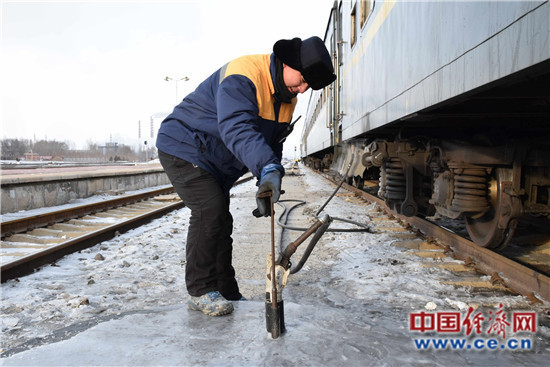積水成冰的工作環(huán)境。(中國鐵路沈陽局集團有限公司供圖)