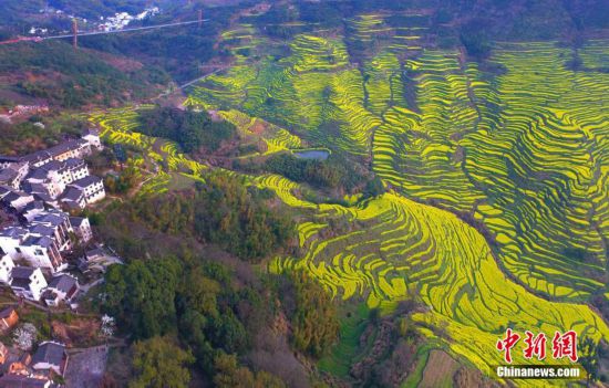 3月18日,航拍江西婺源油菜花海。自3月中旬以來,“中國最美鄉(xiāng)村”婺源的油菜花已進入盛花期,吸引了大批游人前來觀光賞花。