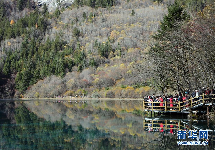 11月7日在九寨溝景區拍攝的景色。 當日,四川省阿壩藏族羌族自治州的九寨溝景區內艷陽高照,風景醉人。九寨溝景區經過地震重建后,于今年9月27日恢復開放85%的區域,“補妝”歸來,美麗依舊。 新華社記者 李夢馨 攝