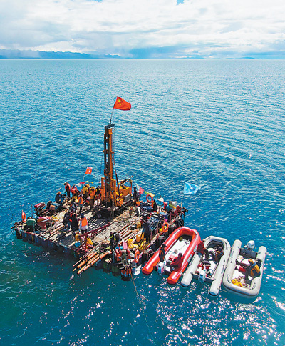 納木錯(cuò)水上鉆探平臺(tái)。 |