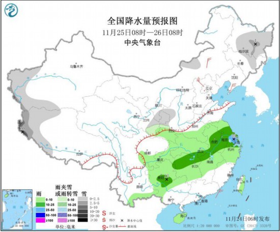 全國降水量預(yù)報(bào)圖(11月24日08時(shí)-25日08時(shí))