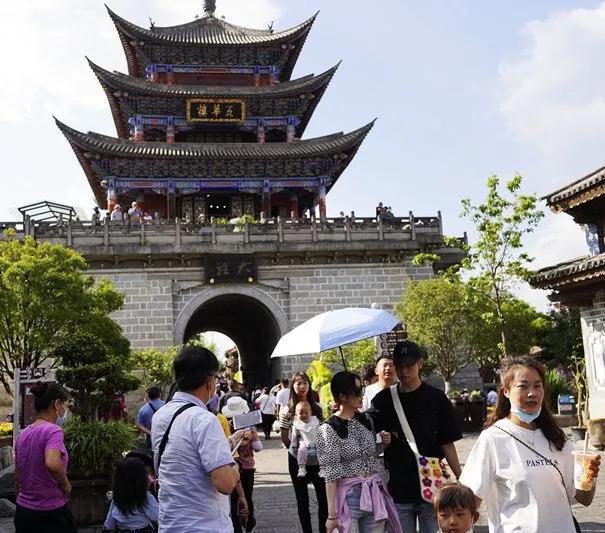 5月1日,大理古城日均游客量超92000人;5月2日,大理市古城保護管理局立即發布客流預警公告,提醒游客錯峰出行。為了一探古城現場情況,3日下午2點,記者來到大理古城。只見南城門游客絡繹不絕,一波又一波地趕往古城,掃健康碼、測量體溫、再掃身份證驗證系統,游客井然有序地走進景區。