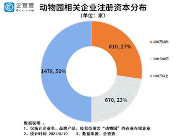 企查查數據顯示,目前我國共有2958家動物園相關企業,江蘇省以289家企業位居第一,山東、廣東分列二、三名。2020年,動物園相關企業新注冊833家,同比增長75.7%,今年前4月注冊量為462家,同比增長187%。此外,全行業50%的企業注冊資本高于500萬。