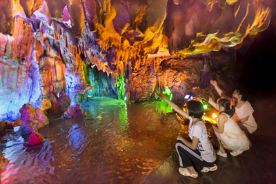 七彩飛瀑溶洞奇觀石林泛舟[NextPage]神龜望石許愿池月亮船